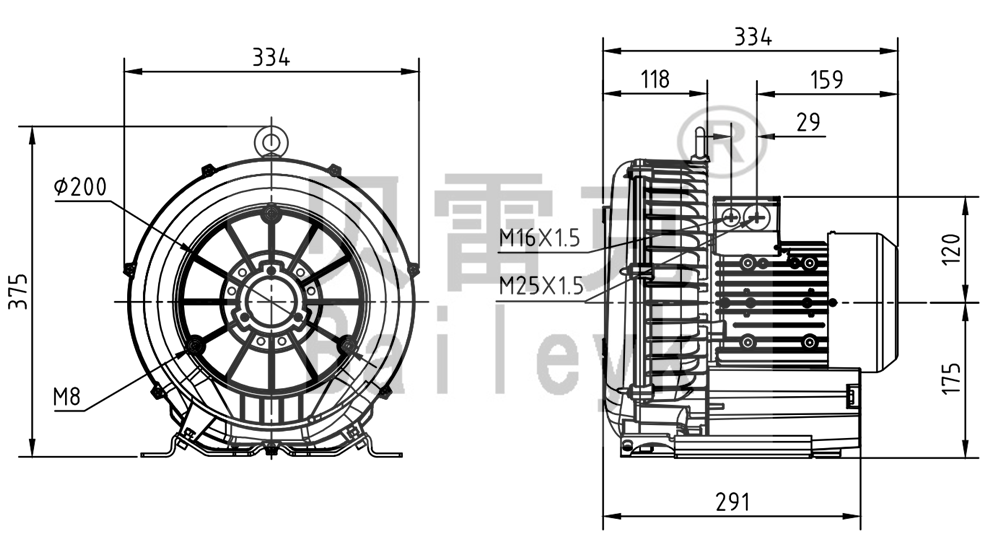 最大風量:270m3/h 最大正壓:40mbar 最大負壓:40mbar 防護等級:IP55 噪音:65db 重量:21Kg