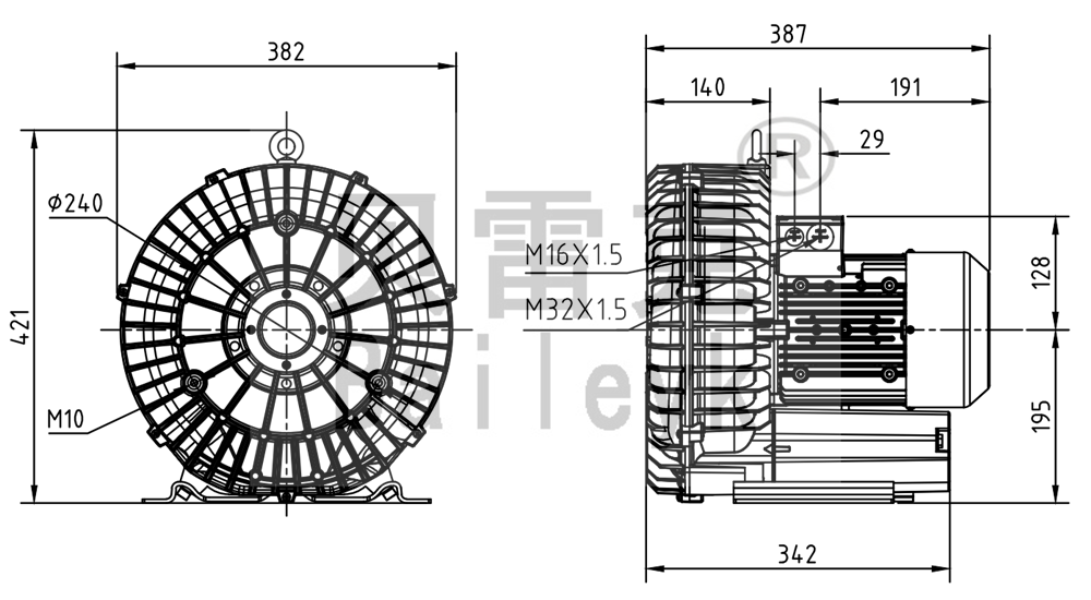 最大風(fēng)量:420m3/h 最大正壓:170mbar 最大負(fù)壓:180mbar 防護(hù)等級(jí):IP55 噪音:70db 重量:32Kg